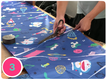 伞布整理后,将其裁剪成符合伞面设计的三角形小片。