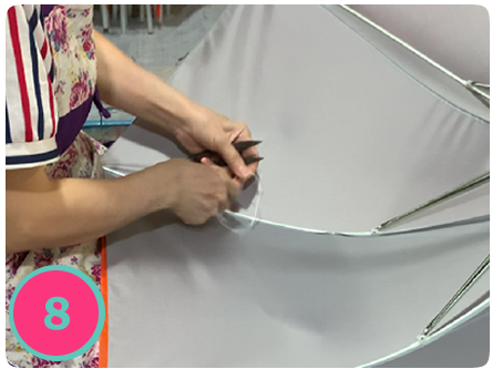 6f彩票红8计划 将伞布固定在伞骨上